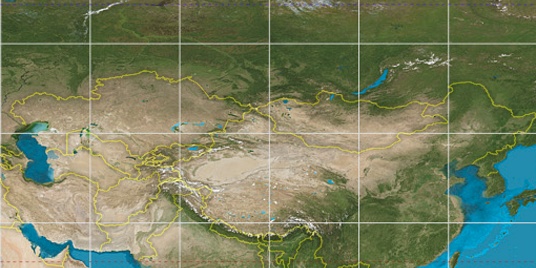 Step for grid lines is 15°. On second map 30° latitude and 75° longitude line is numbered. Map pointer shows the 34.53, 69.17 lat-long coordinates.