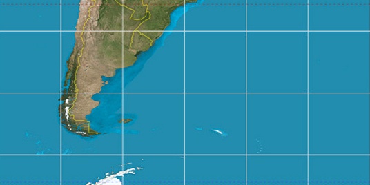 Step for grid lines is 15°. On second map -30° latitude and -60° longitude line is numbered. Map pointer shows the -34.61, -58.38 lat-long coordinates.