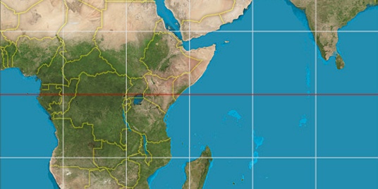 Step for grid lines is 15°. On second map -0° latitude and 30° longitude line is numbered. Map pointer shows the -0.72, 37.15 lat-long coordinates.
