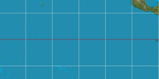 Step for grid lines is 15°. On second map -15° latitude and -135° longitude line is numbered. Map pointer shows the -8.91, -140.1 lat-long coordinates.