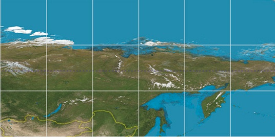 Step for grid lines is 15°. On second map 60° latitude and 120° longitude line is numbered. Map pointer shows the 58.61, 125.4 lat-long coordinates.